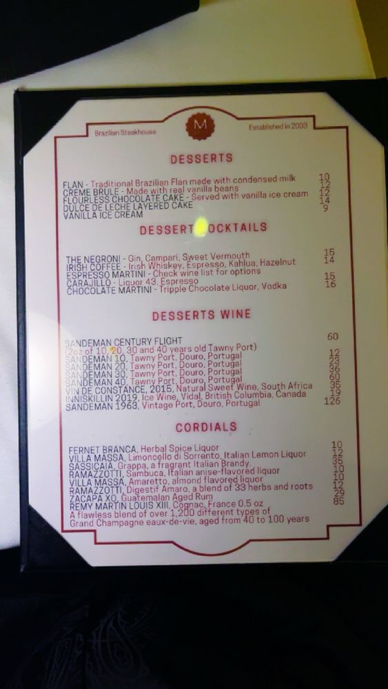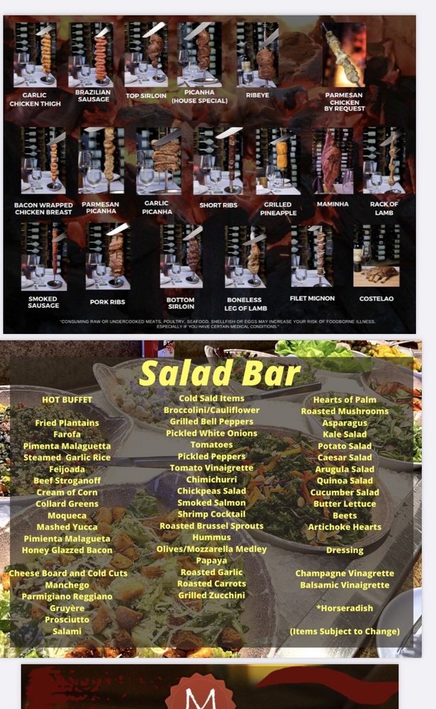 Indulge in a flavorful experience at M Grill, a Brazilian steakhouse located in Koreatown, Los Angeles. Offering a wide selection of high-quality meats, from beef to pork to chicken, all cooked to perfection and served with flair. The vibrant atmosphere and attentive service make dining here a delightful experience. The well-stocked salad bar, accompanied by a variety of sides and sauces, complements the grilled meats beautifully. Highlights include the house Picaña and the roasted pineapple, both culinary delights that will leave your taste buds satisfied. The attentive servers and wait staff go above and beyond to make you feel like royalty. Whether it's a special celebration or a simple indulgence, M Grill promises a memorable dining experience that will keep you coming back for more.