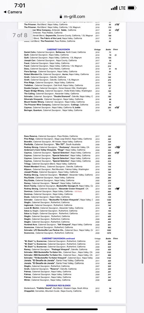 M Grill Menu